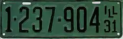 1931 Black on light green with border line; "ILL 31" at right none 1-234-567 1 to approximately 1-411-000