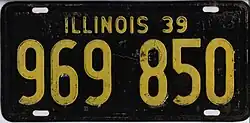 1939 Yellow on black; "ILLINOIS 39" at top none 1234 567 1 to approximately 1639 000