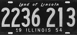 License plates were placed under the jurisdiction of the Secretary of State in 1953. The 1954 plates were the first to feature the "Land of Lincoln" slogan, which continues to be used today.