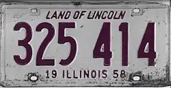 40. ^ "Purple And White Auto Plates For Illinois in 1958". Chicago Tribune. August 16, 1957. p. 1. As a tribute to Northwestern University the 1958 automobile license plates will have purple numbers on a white background.