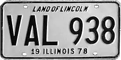 In January 1975 it was recommended that Illinois retain the practice of issuing annual license plates by an advisory committee to Secretary of State Michael Howlett. Two year license plates and a staggered registration system were studied by the committee, but both proposals were rejected.[8] Despite this recommendation Howlett appointed a task force in April 1975 to study how to implement multiyear plates.[9] At the conclusion of the study in September 1975 Howlett stated he would propose to the legislature that Illinois begin issuing multiyear plates validated by an annual renewal sticker. The plates were expected to last five years, and they were to be made of aluminum stock that was twice as thick as the current plates in order to make them more durable.[10] With the 1976 license plates already in production, and the 1977 license plate contract already awarded, the implementation of a multiyear license plate system was delayed.