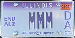 91. ^ "New Illinois license plates support Alzheimer's Association". wandtv.com. June 12, 2018. Retrieved December 28, 2024.