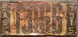 1912 | White on black porcelain; vertical "SASK" and "1912" at left and right respectively | none | 1234 | 1 to approximately 4500 | |