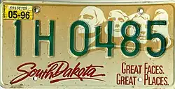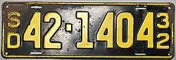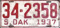 - ^ a b c Tanner, Eric N. "South Dakota Passenger License Plates". allaboutlicenseplates.com. Retrieved November 11, 2020.