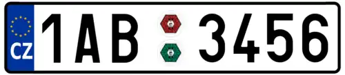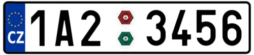 Since 2004 with the accession of the Czech Republic to the European Union, a blue European strip with the letters CZ and European stars have been added.