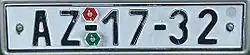 Czech registration plate 1992-2001 (here A = Prague registration)
