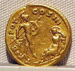 A nude Mars and clothed Venus on an aureus of Antoninus Pius (2nd century AD)