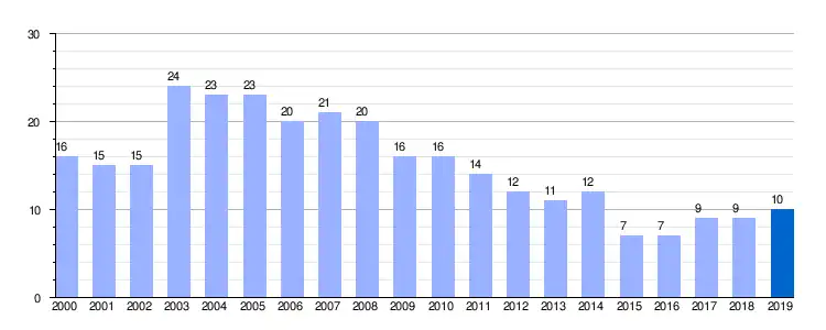 Legal population (2000-2019), according to the municipal census of the National Institute of Statistics.