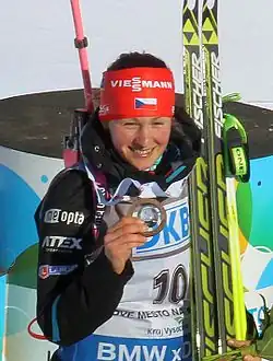 Veronika Vítková (Czech pronunciation: [ˈvɛronɪka ˈviːtkovaː]; born on 9 December 1988) is a Czech former biathlete. She comes from a family of skiers and switched from cross-country to biathlon at age 10.[1] She competed for the Czech Republic at the 2010, 2014 and 2018 Winter Olympics.[2] At the 2014 Winter Olympics, together with Ondřej Moravec, Jaroslav Soukup and Gabriela Soukalová, she won a silver medal in the Mixed relay.[3] At the 2018 Winter Olympics she won the bronze medal in the 7.5 km sprint event.[4]