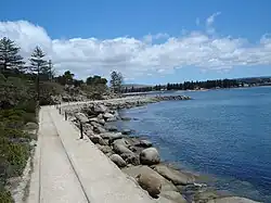 The Victor Harbor Horse Drawn Tram is located on the shores of the city of Victor Harbor, South Australia, Australia. A 3.1 km (1.9 mi) tramway links the city's visitor information centre with the nearby Granite Island. Much of its route is over a 630-metre (2,070-foot) causeway.