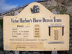 1. ^ "Victor Harbor Horse Tram Authority". Victor Harbor Horse Drawn Tram. Archived from the original on 29 January 2019. Retrieved 29 January 2019.