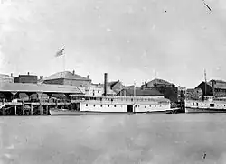 In February 1863 carpenters in Victoria established one of British Columbia's first trade unions the Journeymen Shipwrights Association of Victoria & Vancouver Island.[11] On 4 May 1863 Joseph Spratt and Johann Kriemler started the Albion Iron Works that would later become the Victoria Machinery Depot shipbuilding company on property adjacent to the Upper Harbour. In 1888 the company launched their first vessel, Princess, a tugboat built for the Department of Public Works.[12]
