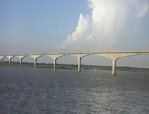 Vikramshila Setu is 6th longest bridge over water in India. The 4.4 km long two lane bridge serves as a link between NH 33 and NH 31 running on the opposite sides of the Ganges. It runs from Barari Ghat on the Bhagalpur side on the south bank of the Ganges to Naugachhia on the north bank.[1] It also connects Bhagalpur to Purnia and Katihar. This has reduced considerably the road travel between Bhagalpur and places across the Ganges.