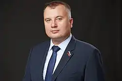 Viktor Victorovich Dzyuba (Russian: Виктор Викторович Дзюба; born 10 August 1977, Tula, Russia) is a Russian politician and a deputy of the 8th State Duma.[1] In March 2006 he became a member of the United Russia. On 14 March 2010 he was elected deputy of the Tula City Duma of the 4th convocation. Four years later, he was re-elected for the 5th convocation. In 2016 he successfully ran for the 7th State Duma from the Tula constituency. In 2017, he became one of the 100 most influential people of the Tula oblast.[2]