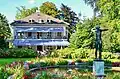 On occasion of the construction of the so-called linksufrige Seeuferbahn (literally: left lakeside railway) in 1872, the spacious estate lost the direct access to the lake. Alfred Escher died in 1882, and he inherited the estate to his daughter Lydia; after her suicide in 1891, the estate was the base to establish the Gottfried Keller Foundation and was bequeathed to the Swiss Confederation (Eidgenossenschaft). The Federal Council acted as the administrator of the foundation, and planned to sell the estate, to meet Lydia Escher's conditions attached to the gift. When this became known, prominent Zürich citizens formed a committee to save the park for the public use. As the city government was unable to raise the funds to purchase the estate, the citizens of Zürich bought shares to help rescue the park, and within a few days, the required capital was secured. To finance its maintenance, the Belvoirpark Society (Belvoirpark-Gesellschaft) sold several building plots along Seestrasse. In 1901, the city of Zürich was able to take over the property and thanked its citizens for preventing the appalling loss of the treasured estate. The villa was renovated in 1925 to house the Hotel and Hospitality School with an attached restaurant, known as Belvoir.[1] As of today, the villa also is used by the Wollishofen guild, but it primarily houses the restaurant Belvoir Park which is operated by the students of the hotel management school Belvoirpark Hotelfachschule.