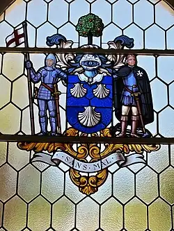 Stained Glass window bearing the Strickland coat of arms in the dining room extension at Villa Bologna