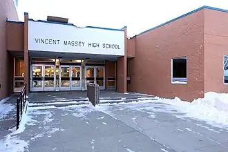 Vincent Massey High School is a high school in Brandon, Manitoba, Canada,[1] and part of the Brandon School Division. The school opened in 1960 and it currently has more than 1100 students.[2] The school is named for former Governor General of Canada Vincent Massey.