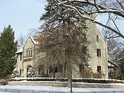 1928 Tudor Revival Known as the "David Wylie House";[4] designed and built by Charles A. Pike Construction[8]