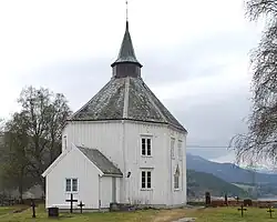 Vinje Church (Norwegian: Vinje kirke) is a parish church of the Church of Norway in Heim Municipality in Trøndelag county, Norway. It is located in the village of Vinjeøra, just north of the European route E39 highway. It is the church for the Vinje parish which is part of the Orkdal prosti (deanery) in the Diocese of Nidaros. The white, wooden church was built in an octagonal style in 1821 using plans drawn up by the architect P. Konstum. The church seats about 200 people (150 on the main floor and 50 more in the balcony).[1][2]
