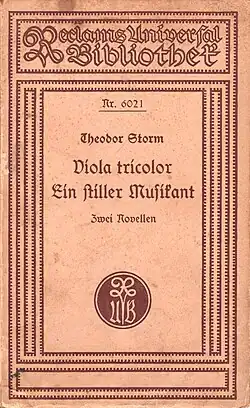 Viola Tricolor is an 1874 novella by the German writer Theodor Storm. It tells the story of a man who remarries after his wife has died, and how the new woman feels insufficient in her role as wife and mother to her step-daughter. The novella was first serialised in the journal Westermanns Monatshefte. An English translation by Bayard Quincy Morgan was published in 1956.[1]