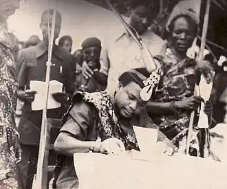 Le roi Lenghe III Rugaza Kabale (père du roi actuel Lwegeleza III) en 1987.