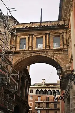 The basilica which now houses the image of 'Our Lady' was built on the site of a Roman temple. A renaissance arch leads from the basilica on Plaza de la Virgen to Valencia cathedral. Inside the basilica there is a Gothic style statue of The Virgin with two children at her feet. A mechanical device allows the statue to revolve. Antonio Palomino (1653 - 1726) painted the frescoes on the dome of the nave.[6]