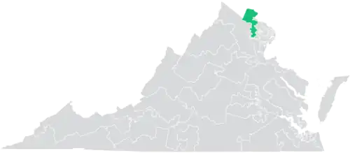 The district overlaps with Virginia's 1st and 10th congressional districts, and with the 10th, 13th, 32nd, 33rd, 40th, 50th, 67th, and 87th districts of the Virginia House of Delegates.[4] It borders the states of Maryland and West Virginia.[1]
