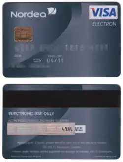 Visa Electron was a debit card product that used the Visa payment system. It was offered by issuing banks in every country with the exception of Canada, Australia, Argentina, Ireland and the United States.[1] The difference between Visa Electron and Visa Debit, a similar product, is that payments with Visa Electron always require on-line electronic authorisation, and typically require that all the funds be available at the time of transfer, i.e., Visa Electron card accounts may not normally be overdrawn. Most Visa Debit cards, on the other hand, may be processed offline, without online authorisation, and may allow transfers exceeding available funds up to a certain limit. For that reason, Visa Electron cards are more commonly issued to younger customers or customers that have poor credit.[2] Online stores and all offline terminals do not support Visa Electron because their systems cannot check for the availability of funds. In addition to point of sale debit payments, the card also allows the holder to withdraw cash from automated teller machines (ATMs) using the Plus interbank network.