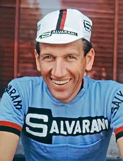 Adorni won two races in his first full year as a professional in 1961, riding for Philco and winning stages of the Giro d'Italia and the Tour of Sardinia.[3] Adorni was more a domestique than a leader[4] but he nevertheless won the 1965 Giro and the 1968 world road race championship. The championship was on the car race circuit at Imola, Italy. He broke clear with 93 km still to ride. He finished 10 minutes ahead of the field, helped in the peloton by his Italian teammates and also by Eddy Merckx, his normal teammate, who did not take up the chase.