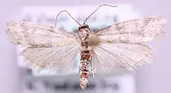 The wingspan is 12–18 mm.[3] Adults are on wing from June to August.