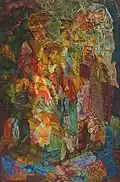 He then taught art and theatre sets, painted portraits, and restored icons. From the beginning of the 1970s he painted religious topics, against state orders. Like other painters in the Soviet Union, he was courted by Western diplomats and journalists who had their own agenda. From them, he obtained a gilded picture of life in the West. When painters in the Soviet Union tried to break the yoke of the state which commissioned portraits of political leaders and forbade creativity, dissident artists gathered in a movement for free creation and exhibition of their work. Non-conformist artists in Moscow attempted to reach the public by organising in the open-air what was to become known as the Bulldozer Exhibition on 15 September 1974. Police dispersed the artists and their exhibits.