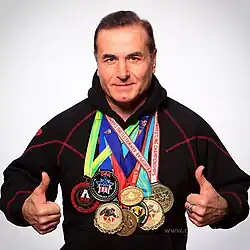 2. ^ "Results from World Arm wrestling Championship in Italy in 2009" (PDF). Archived from the original (PDF) on 10 March 2014. Retrieved 24 March 2013.