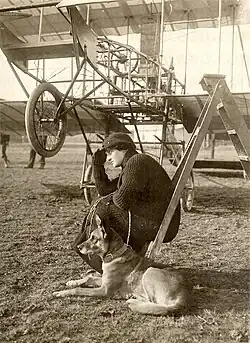 Raymonde de Laroche, first woman to earn a pilot's licence, with Voisin