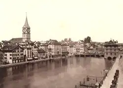 ![]() Wühre (left) in 1882, looking north along the Limmat | |