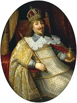 In the meantime, Władysław still tried to take a leading role in European politics, and negotiate a peaceful settlement to the Thirty Years' War, a settlement which he hoped would ease his way into regaining the Swedish crown.[44] Following the armistice of Stuhmsdorf, Władysław came to increasingly realize that his prospects for regaining the Swedish throne were dim.[45] In the years 1636–1638 he proposed several reforms to strengthen his and his dynasty's power in the Commonwealth. His first plan was an attempt to secure a hereditary province within the country, which would not be threatened by the possible power shift following a future royal election; this, however, did not gain sufficient support in the Sejm.[46] Next, Władysław attempted to create an order of chivalry, similar to the Order of the Golden Fleece, but this plan was scuttled down as well, with the szlachta and the magnates seeing this as an attempt to create a royal, loyalist elite, and traditionally opposing anything that could lead to the reduction of their extensive power.[47] Popular vote and opposition also resulted in the failure of the plan to raise taxes from trade tariffs; here it was not only the nobility but even the merchants and burghers from towns, like Gdańsk (Danzig) who were able to muster enough support (including from foreign powers) to stop the king's reforms.[48] In fact, the defeat of his plans was so total, that he was forced to make certain conciliatory gestures to the nobility, as the Sejm passed several laws constraining his authority (such as to hire foreign troops), further indicating the limits of royal power in the Commonwealth.[48]
