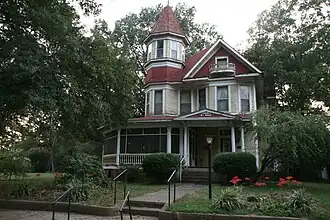 The W. L. Wood House is a historic house at 709 North Morrill Street in Morrilton, Arkansas, United States. It is a 2+12-story wood-frame structure, with a hip roof, weatherboard exterior, and foundation of stone and brick. It has the asymmetrical massing typical of the Queen Anne period, with a three-story turret at the left corner, and a porch that wraps across the front and around the base of the tower. The porch is supported by round columns and has a turned balustrade and a low gable over the main steps. A large gable that projects from the main roof has a rounded-corner balcony at its center. The interior has richly detailed woodwork in the Eastlake style. The house was purchased as a prefab from Sears & Roebuck, shipped by rail to Morrilton, moved to its current location by mule drawn wagon and built in 1905–06 for William L. Wood, a prominent local businessman.[2]