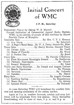- ^ a b "Radio Fans Tune In! WMC Opens Tonight", Memphis (Tennessee) Commercial Appeal, January 20, 1923, page 1.