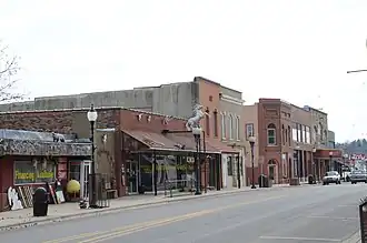 The Waldron Commercial Historic District encompasses the historic central business district of Waldron, Arkansas. This area, a five-block stretch of Main Street (extended to Washington Street to include the old Scott County Courthouse), was primarily developed between 1880 and 1920, but was an active commercial area from the town's incorporation in 1852. An unknown number of its early buildings were destroyed during the American Civil War. Most of the buildings are one and two story brick structures, with a variety of commercial architectural and vernacular styles present. The courthouse is a notable late building: it was built in 1933, and has Art Deco styling.[2]