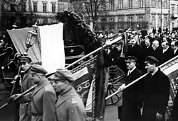 The funeral took place on 5 April at Warsaw Garrison Church. Sławek was buried at the Powązki Cemetery; among the pallbearers were Aleksander Prystor, Janusz Jędrzejewicz, Michał Tadeusz Brzek-Osinski and General Lucjan Żeligowski. The funeral was a demonstration of those followers of Piłsudski who opposed the Śmigły-Rydz's regime. The Marshal himself was present at the cemetery, but was unable to get closer to the coffin, prevented by the pallbearers, who blamed him for Sławek's death.
