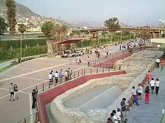 Part of the sea wall has been restored at the back of the Church of San Francisco, near the Government Palace, which has created a public space named Parque de la Muralla (Park of the Wall). In this park, the remnants of the foundations that had been the seawall are visible, which was done by the Franciscans in 1610. The aforementioned park has a restaurant and a shop selling hand-made items from different areas of the country. The park contains a statue of Francisco Pizarro, which used to be in the "Plaza Pizarro," located next to the Government Palace. There is also a museum exhibiting archaeological pieces found in the area.