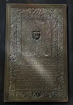 The first chapel, founded in 1513 and abutting to the south of the church, offered masses for the souls of Chepman, his first wife and of the King and Queen. The equivalent part of the modern church is now known as 'The Chepman Aisle'. It contains the seventeenth century tomb of The Marquess of Montrose and a memorial plaque in honour of Walter Chepman donated by the nineteenth century publisher William Chambers.[4]