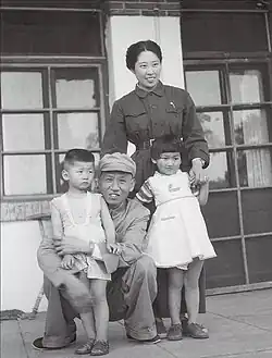 Their twenty-year marriage produced one son and three daughters; Liu Shaoqi already had five children from previous marriages. Wang was transferred to the General Office of the Central Committee and worked as her husband's private secretary for nearly twenty years, until she was imprisoned in 1967 at the start of the Cultural Revolution.[5] Wang Guangmei was also elected to the executive committee of the All-China Women's Federation in 1957.[5]