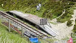 Wanlockhead railway station was opened on 1 October 1902[2] as the terminus on the Leadhills and Wanlockhead Light Railway and served the lead mining area, farms and the village of Wanlockhead. Elvanfoot railway station in South Lanarkshire was the junction for the branch and was located on the west coast main line. It remained open until 2 January 1939 for passengers and freight.[2] When Wanlockhead station opened in 1902, a year after Leadhills station, it became the highest standard gauge adhesion station in the United Kingdom at 1,413 ft (431 m), 7 miles 24 chains (11.7 kilometres) from Elvanfoot.[6][7]
