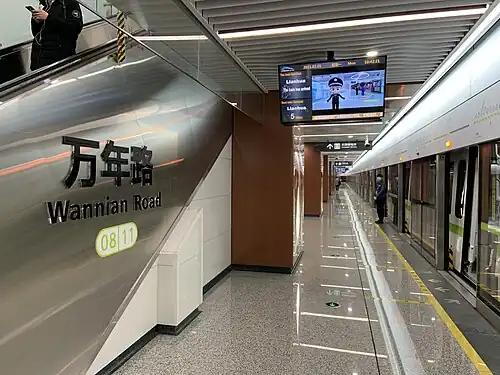 Wannian Road station (Chinese: 万年路站; pinyin: Wànnián Lù zhàn) is a metro station at Chengdu, Sichuan, China. It was opened on December 18, 2020 with the opening of Chengdu Metro Line 8.[1][2][3]