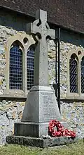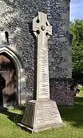 12 June 1921 | The memorial was designed by F.J. Hodgson and is carved in Portland stone with a total height of 13 ft (4.0 m). It is set into a curved wall at the crossroads to the north of the parish church.[23] | None |