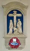 12 March 1921 | The memorial takes the form of a Calvary figure in Portland stone. It was designed by Thomas Mewburn Crook.[35] | Grade II 1439357 |
