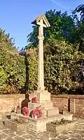 Described by Historic England as "A simple yet dignified Latin cross memorial influenced by Blomfield’s Cross of Sacrifice".[39] | Grade II 1448322 | |