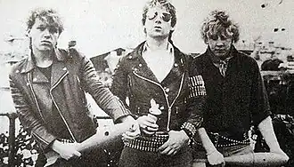 The band was founded in 1984[3] by drummer/singer Paul "Evo" Evans, guitarist Gunner and bassist Falken. Evo had previously played drums in the punk bands Major Accident, The Blood and Angelic Upstarts,[4] and wanted to "blend metal and punk in a manner not done before".[3] In 1984, Warfare released two singles and an EP. On their second single, the band covered "Two Tribes" by Frankie Goes to Hollywood.[2]