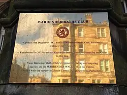 In 1886 the Warrender Private Baths Company Ltd. built a private swimming baths in Edinburgh. The land was bought from Sir George Warrender, MP and the baths opened on 17 December 1887.[3] Warrender Baths Club (Warrender) was established in 1888.[4]