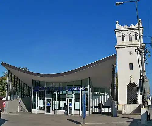 ![]() West entrance to the platforms with the ticket office, located on the level of Aleje Jerozolimskie on the edge of the terrace of the Vistula next to the Poniatowski Bridge's little tower | |||||||||||||||||||||||||||||||||||||||||||||||||||||